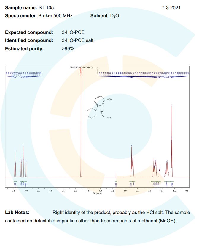 If you wish to see NMR results for 3-HO-PCE or any other chemical, please email us at requests@chemical-collective.com.
