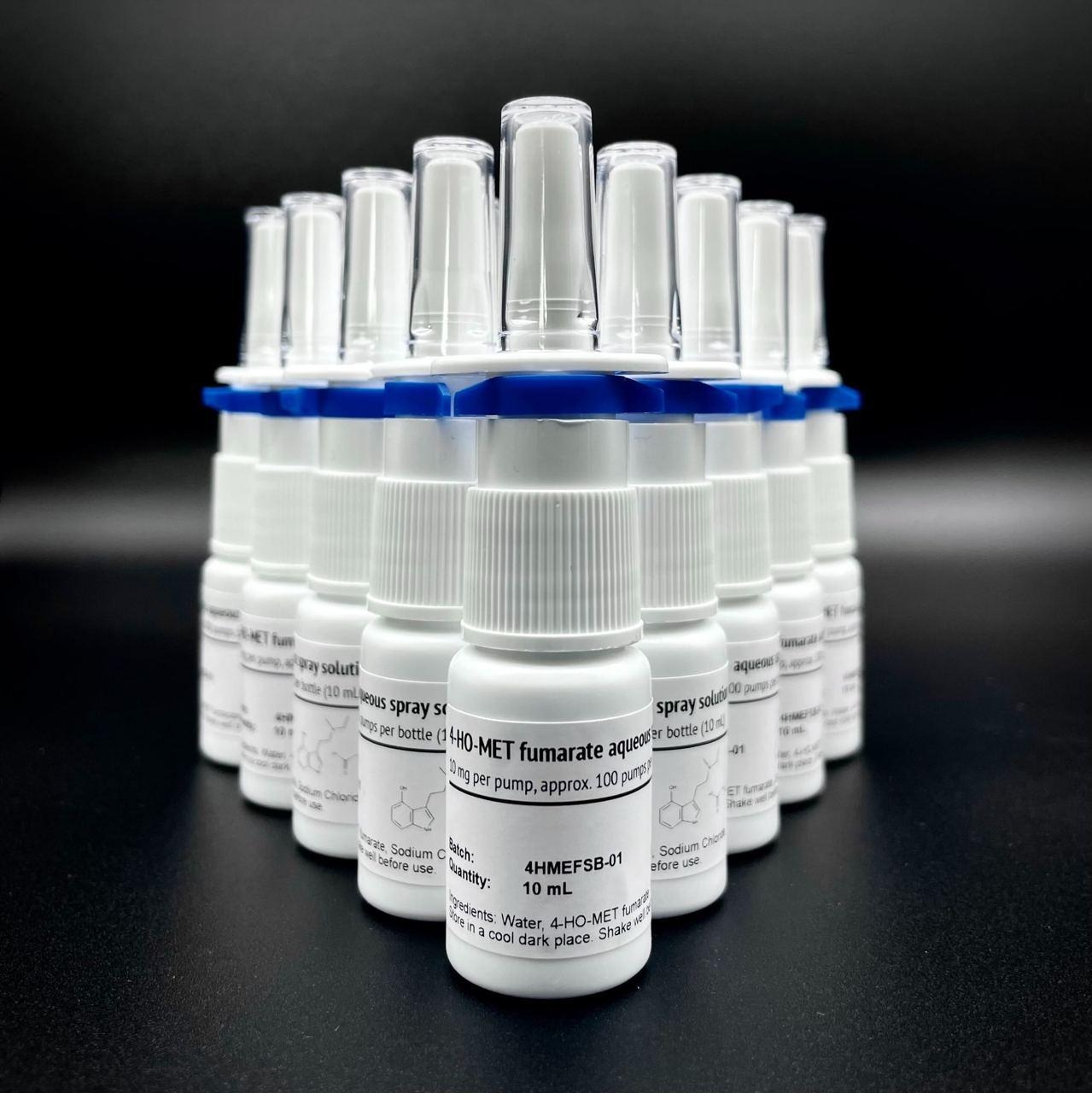Each one of these 4-HO-MET Fumarate spray bottles contains 1000mg (1g) of 4-HO-MET Fumarate. Each spray contains 10mg and there are approximately 100 sprays per bottle.