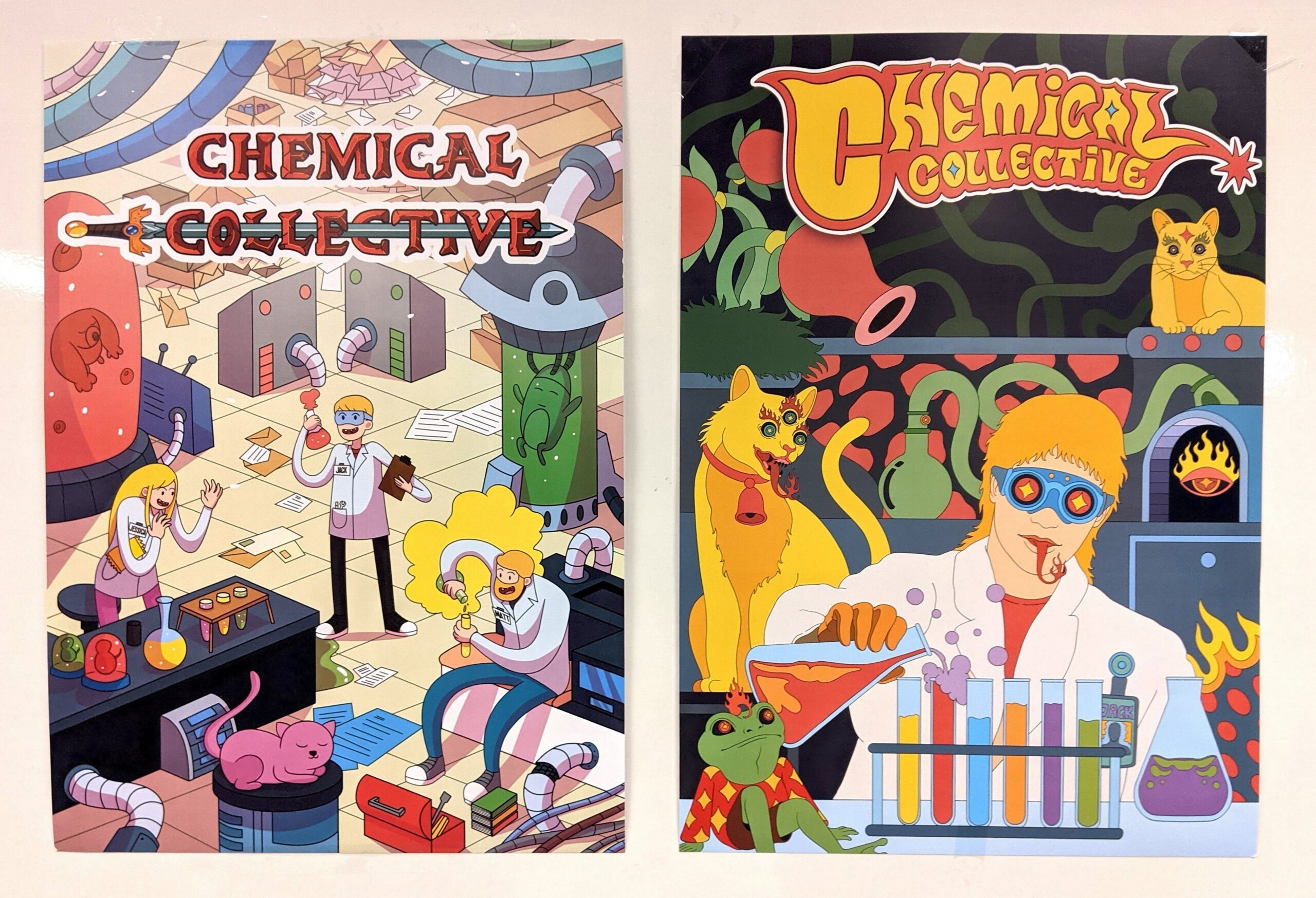 These are custom made A3 Chemical Collective posters designed by two wonderfully talented artists. We’re really happy with how they came out. We hope you like them too!