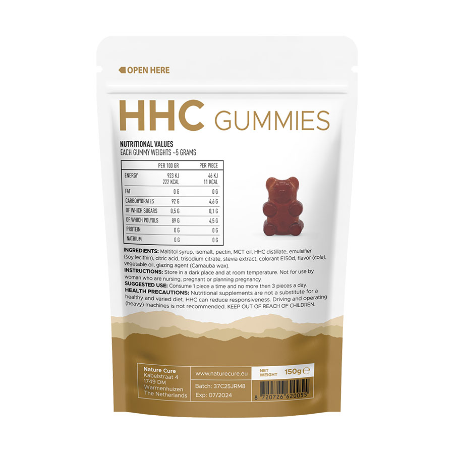 The suggested dosage from the manufacturer is 1-3 gummies, however we always recommend starting at a lower dosage to begin with. If you’re completely new to HHC and THC products, half a gummy bear can be a good starting dosage. Do not underestimate HHC just because it’s legal! And DO NOT get impatient and eat more until the first one(s) has taken effect!
