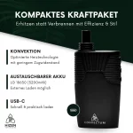 Featuring an innovative convection heating system with completely insulated airways, resulting in a smooth but intense vapour. With available accessories to take your vaping experience to the next level; this is German engineering at its finest. *chefs kiss*
