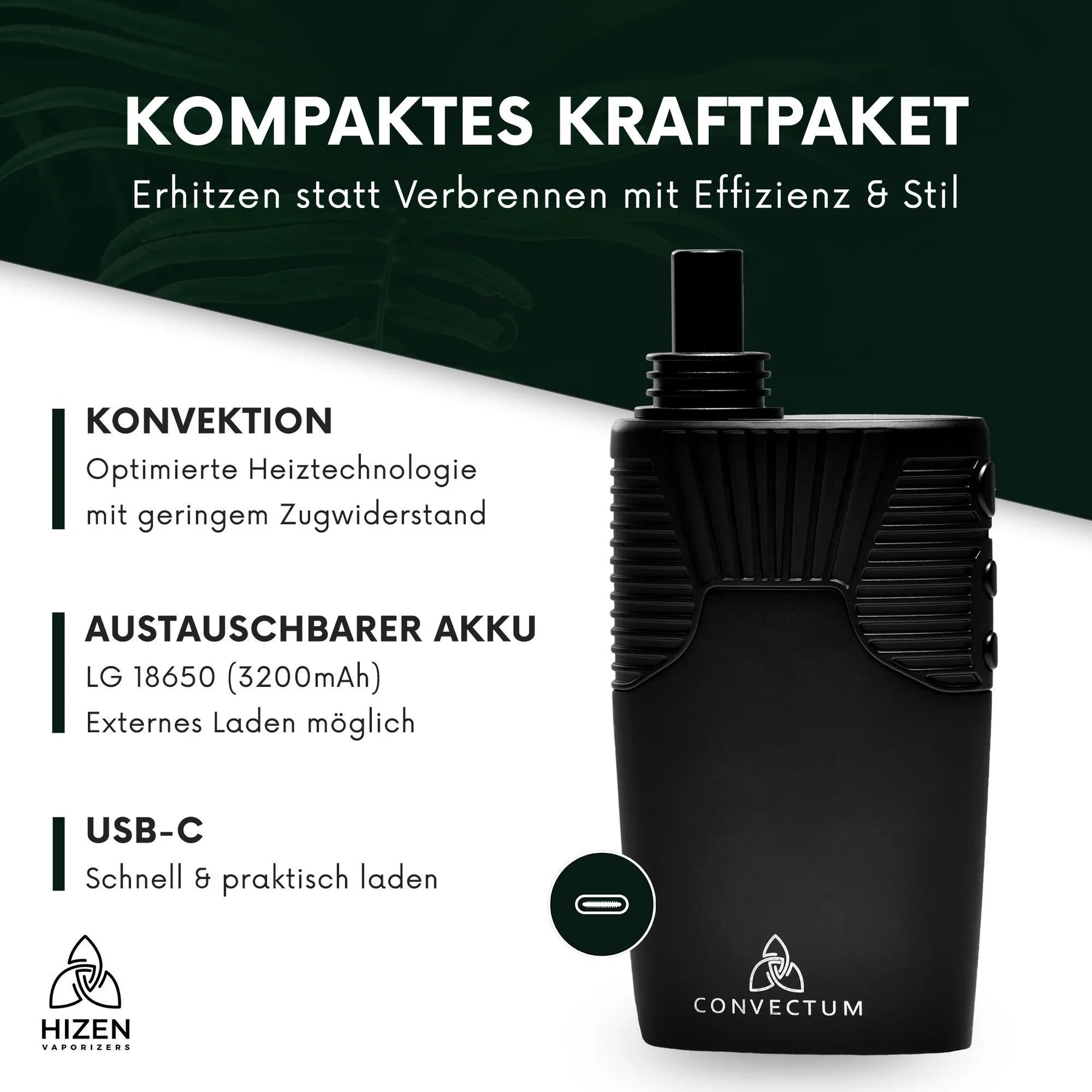 Contents:Convection Vape, Glass Mouthpiece, Foldable Mouthpiece, Brush & Tamper, USB-C Cable, 3 Sieves, 18650 battery