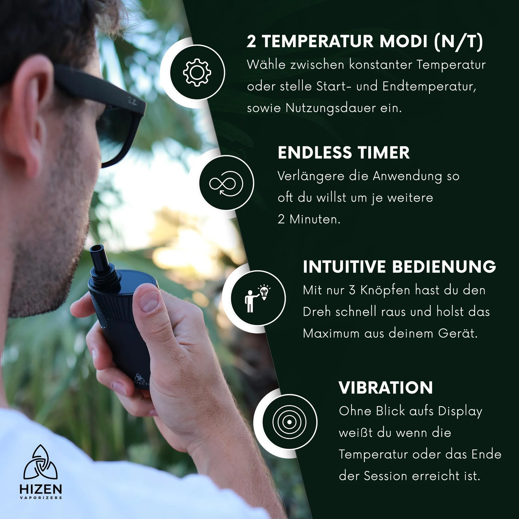 Hizen are a small German company from Baden-Württemberg, with a passion for delivering innovative design and top of the range evaporation technology to the EU market. With the finest German engineering and the most robust materials, Hizen produces high performing vaporizers & accessories that are built to last.