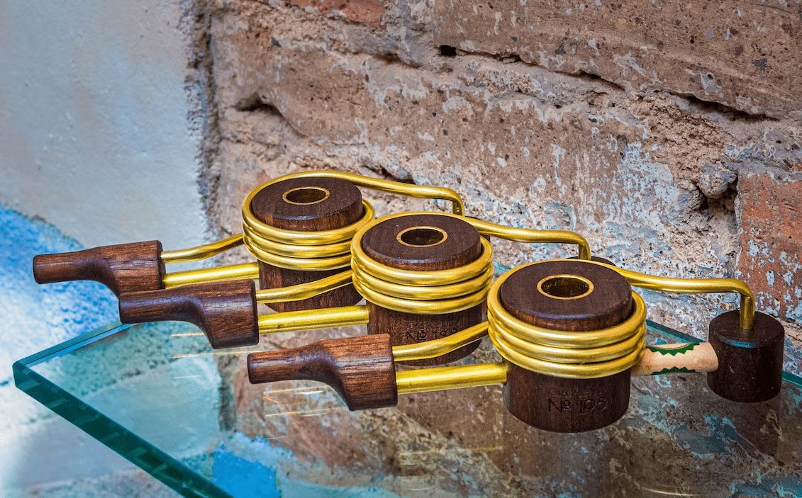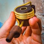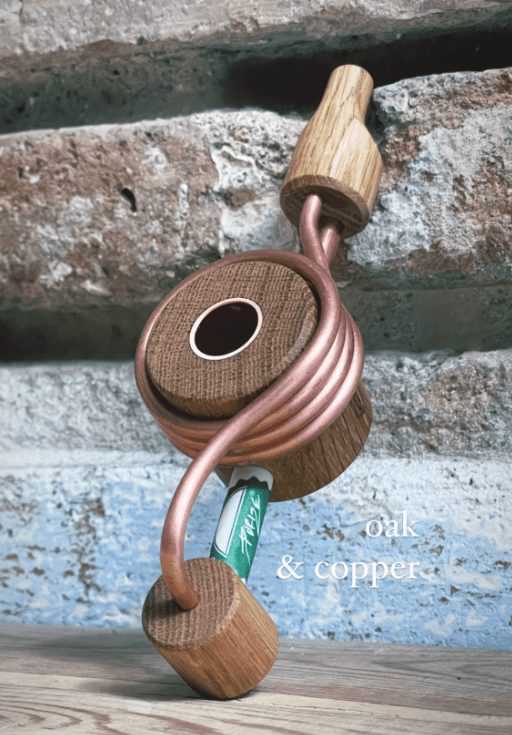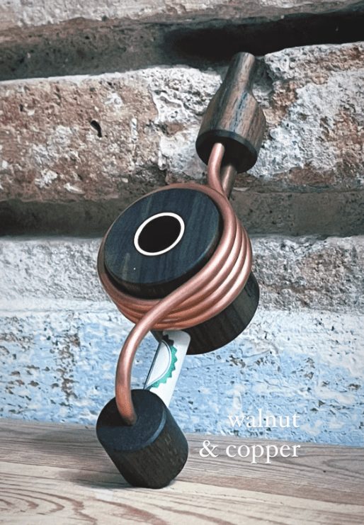 A Beautifully handcrafted steampunk inspired pipe featuring an eye-catching 50 cm long coiled cooling pipe and three hand-turned walnut chambers.