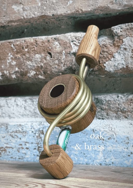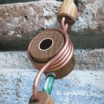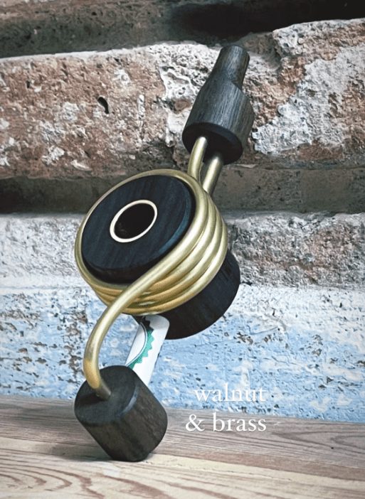 There are two wood (walnut, oak) and metal (brass, copper) options for this piece. Please specify in the order notes which combination you would like.